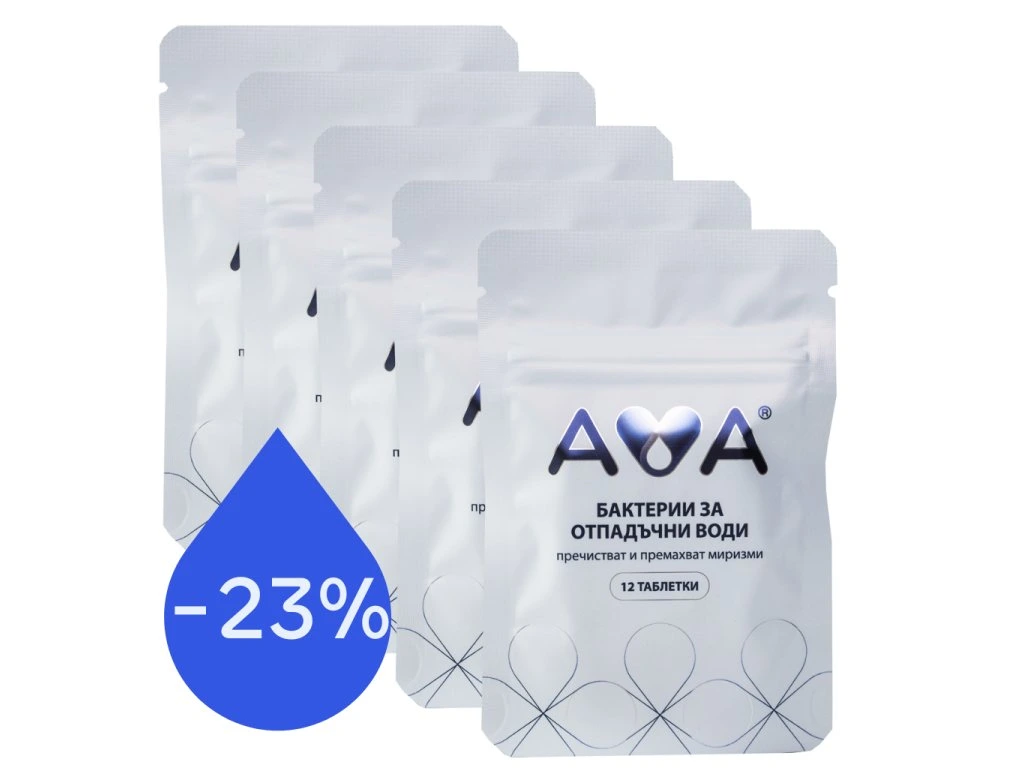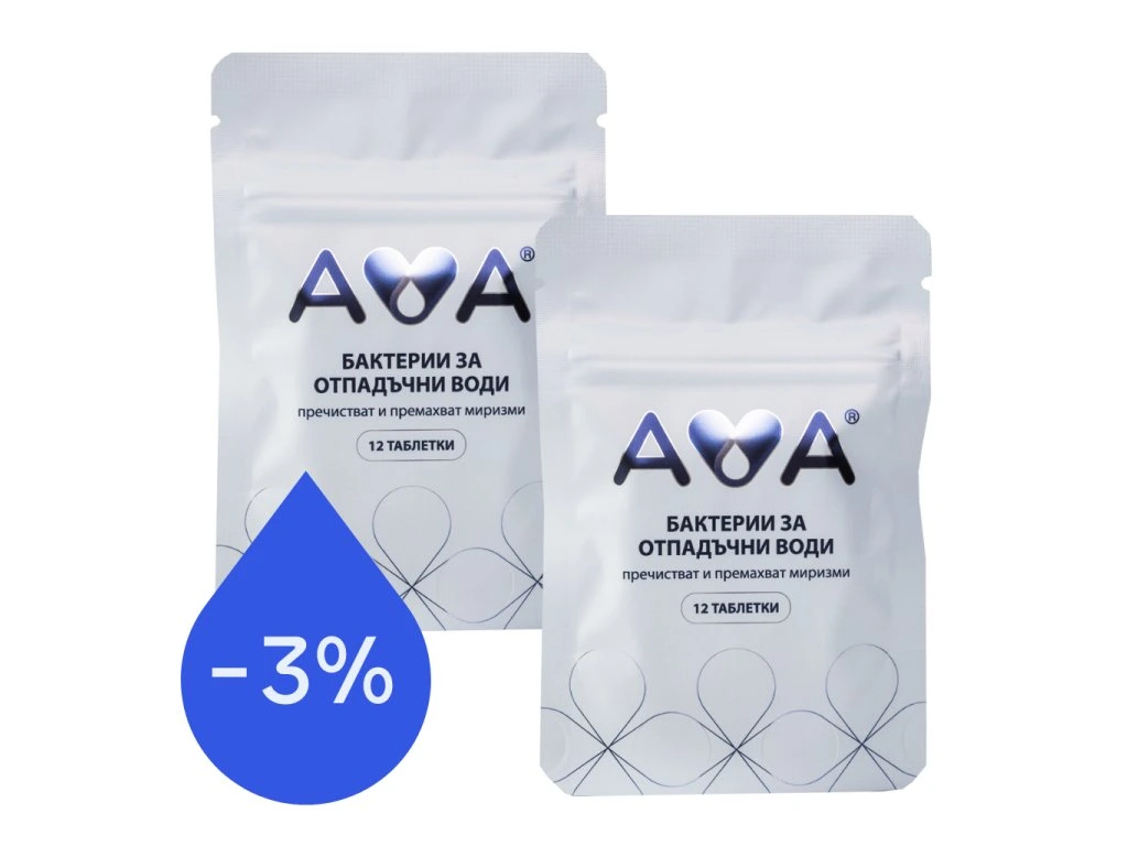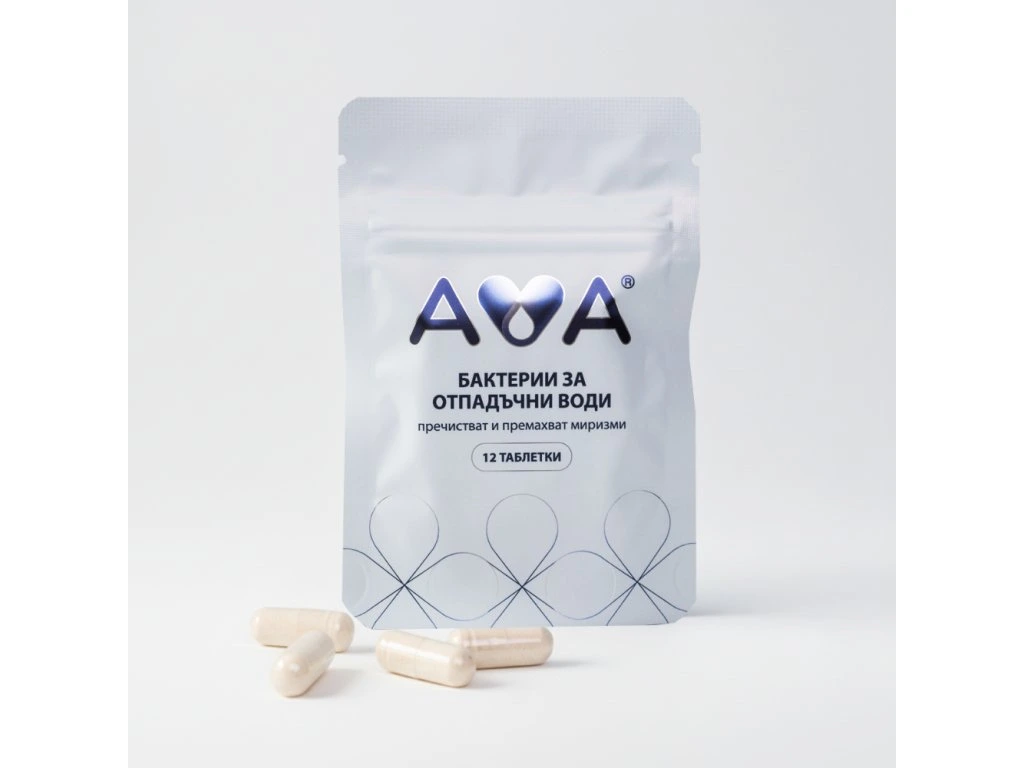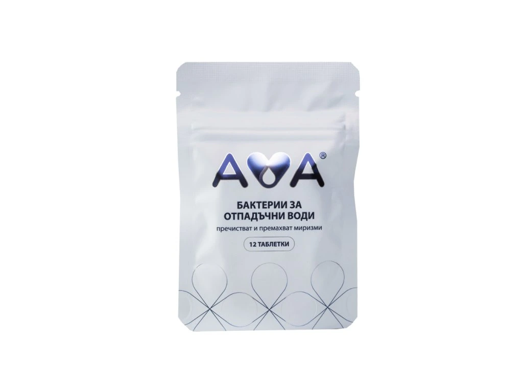 AVA Бактерии в таблетки за септични ями, пречиствателни станции и външни тоалетни премахват миризмата, пречистват водата, намаляват до минимум количеството на утайката (клиенти съобщават, че интервалът между изпомпванията и почистванията се е удължил многократно). Предотвратяват наслояване. Изключително устойчиви. Лесно дозиране с таблетки, които се пускат директно в тоалетната (1 таблетка на всеки две седмици). Ефективни дори в най екстремните условия.